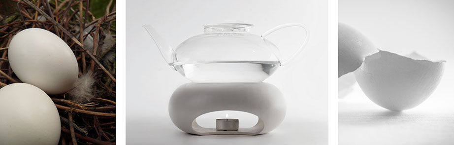 Unter diesem Arbeitstitel entstand ein Stövchen für Teekannen verschiedener Größen. Seine schlichte runde Form unterstützt die sinnliche und ruhige Atmosphäre, die beim Teetrinken so geschätzt wird. Aus Porzellan im Rotationsguss gefertigt, ist es mit seiner matt-weißen Oberfläche ein leiser Begleiter, der stets ein harmonisches Ensemble mit Kanne und Inhalt bildet.