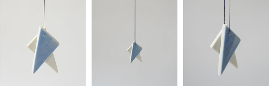 Dieser Kettenanhänger besteht aus zwei übereinander liegenden Dreiecken in zwei Farben.
