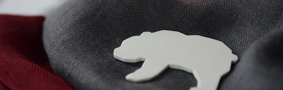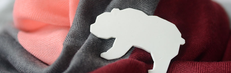 Dieser Anstecker hat die Form eines Bären und ziert auf elegante Weise Tücher und andere Kleidungsstücke.